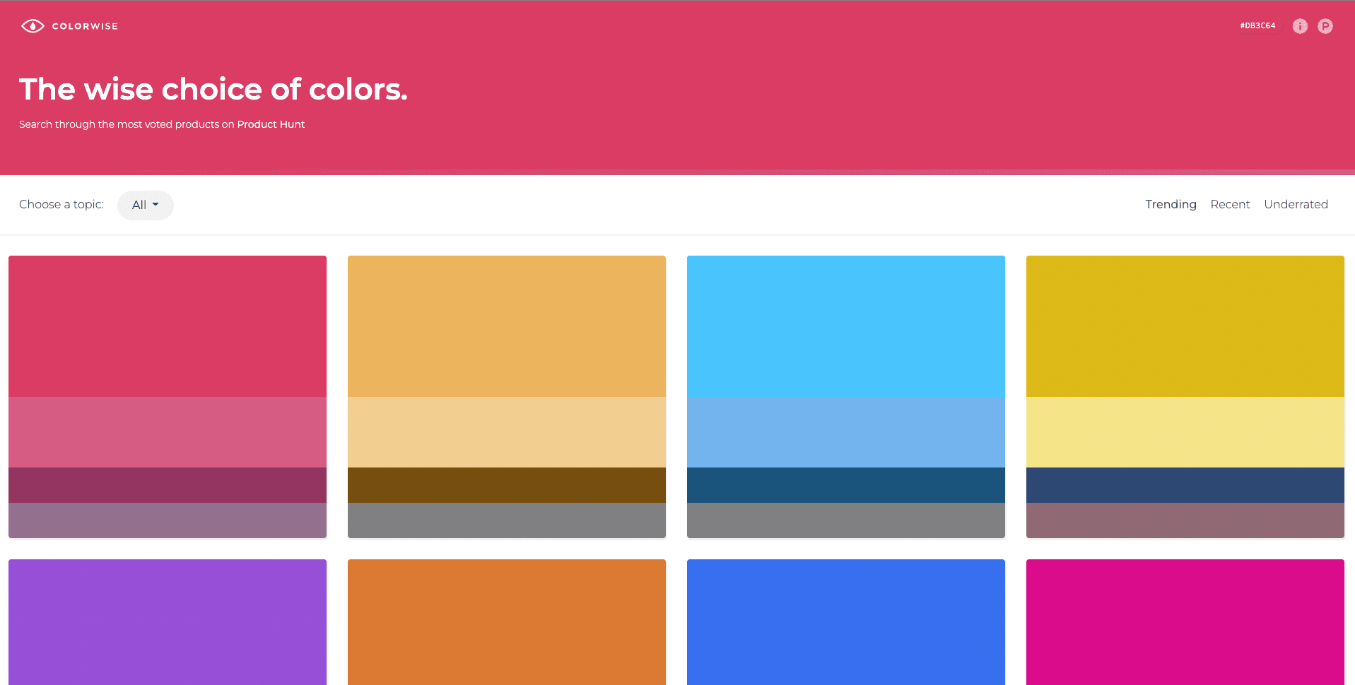 Here you can find the perfect matching color scheme for your next project! Generate nice color palettes, color gradients and much more! Your space for everything that has to do with color!